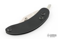 A variety of blade shapes, steels, handle materials and thicknesses are available so you have a “parts chest” of options to choose from or tailor to a specific situation. Blades can be changed out to suit the job at hand, or swapped when it starts to get dull so you won’t have to worry about sharpening until later. The spine of the blade is left crisp so it can be used to scrape or strike a firesteel when in the closed position.
