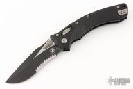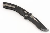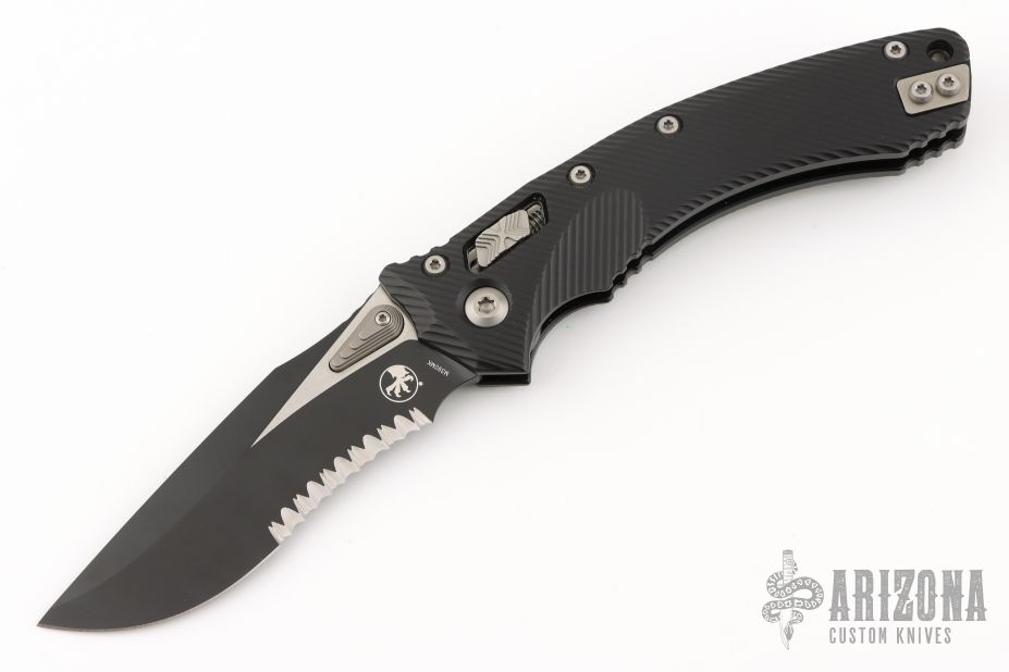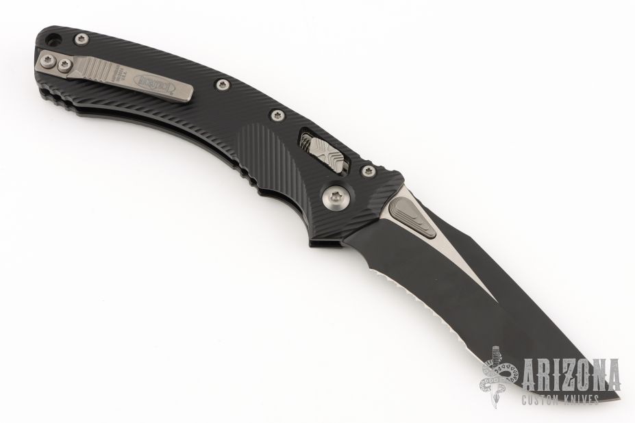 - Blade: Partially serrated recurve blade with a black finish made from Bohler M390MK steel.