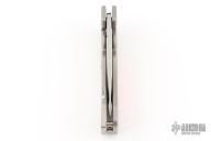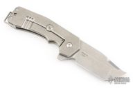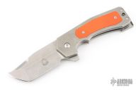 This GMT Rhino Mid-Tech by Jon Graham features a stonewashed blade with flipper. The handle has a stonewashed titanium frame with an orange G-10 inlay, matching tip up tail clip and a satin finished lockbar stabilizer. Comes with a cloth pouch. Rides on bearings, nice detent, lockup and blade seating. New from maker.
