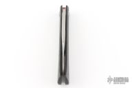 This G.A.F. by James Brad Blount features a tumbled clip point blade with swedge. The handle has a linerless green canvas micarta frame over a matching steel spring. Lanyard hole in pommel. Strong pull and the spring is flush in the open, closed and half stop positions. New from maker at the 2025 Texas Blade Show!