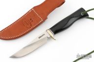 This Model 7-4.5 from Randall Made Knives features a satin finish clip point blade with notched thumbrest, .167" blade stock and 1.027" blade depth, hidden tang construction. The handle is comprised of a nickel silver single guard and butt plate, black linen micarta grip with a lanyard hole in the butt, black/duralumin spacers. Comes with a brown leather sheath. New from maker.