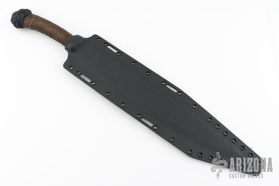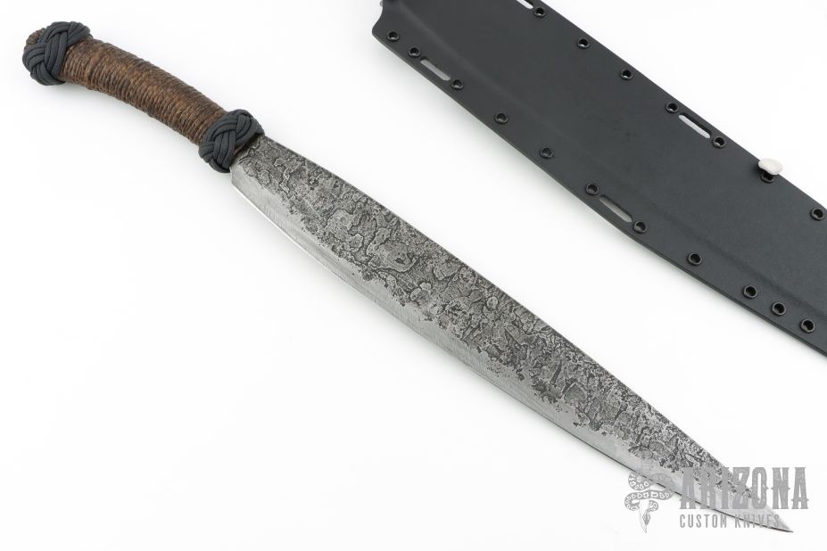 This Barong by James Helm features a hand forged blade, .236" blade stock and 2.199" blade depth, hidden tang construction. The handle has a paracord and hemp wrap that has been epoxied. Comes with a kydex sheath set up for TekLok. New from maker at the 2025 Texas Blade Show!