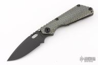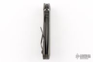 This SNG framelock folder by Mick Strider features a black blade and a dimple pattern grip G-10 and flamed titanium frame and tip up titanium clip. Includes a "Lock Bar Stabilizer" for maximum reverse lock retention. Nice detent, lockup and blade seating. Has a couple light scuffs, excellent condition otherwise.