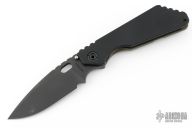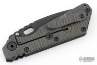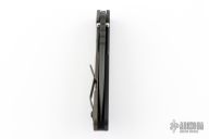 This Mick Strider SMF Fatty framelock folder features a black blade with thumbhole and notched thumbrest. The handle has a black aluminum and flame finished titanium frame with titanium clip, tip up carry. Jimping on blade spine. Nice lockup, detent, and blade seating. NSN: 1095-01-531-5015. Has a couple light scuffs, otherwise excellent condition.