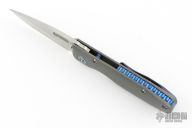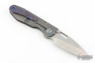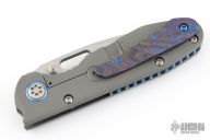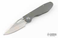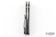 This Fury MS by Rip Knives features a hollow ground drop point blade with dual thumbstuds. The handle has a blasted and tumble finished titanium frame, custom notched and anodized backstrap, and tip up DarkTi clip. Nice detent, lockup and blade seating. Comes with COA and zipper case. Has a couple light scuffs and scratches, excellent condition otherwise.