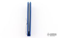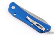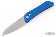 This Oligarch by Pro-Tech Knives features a stonewashed wharncliffe shaped blade. The handle has a blue anodized aluminum frame with a stainless deep carry tip up clip and a bead blasted button. Comes with original box and papers. New from maker at the 2024 CCKS Fall Show.