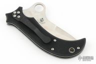 This knife by Spyderco is a Jotsingh Khalsa design, it features a satin finished blade with a thumbhole. The handle has black G-10 scales, stainless steel liners and a stainless steel tip down clip. Nice detent and blade seating. Comes with original box and papers. New condition.