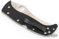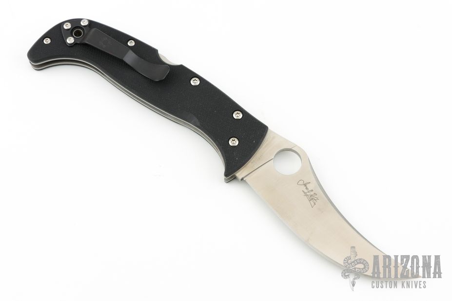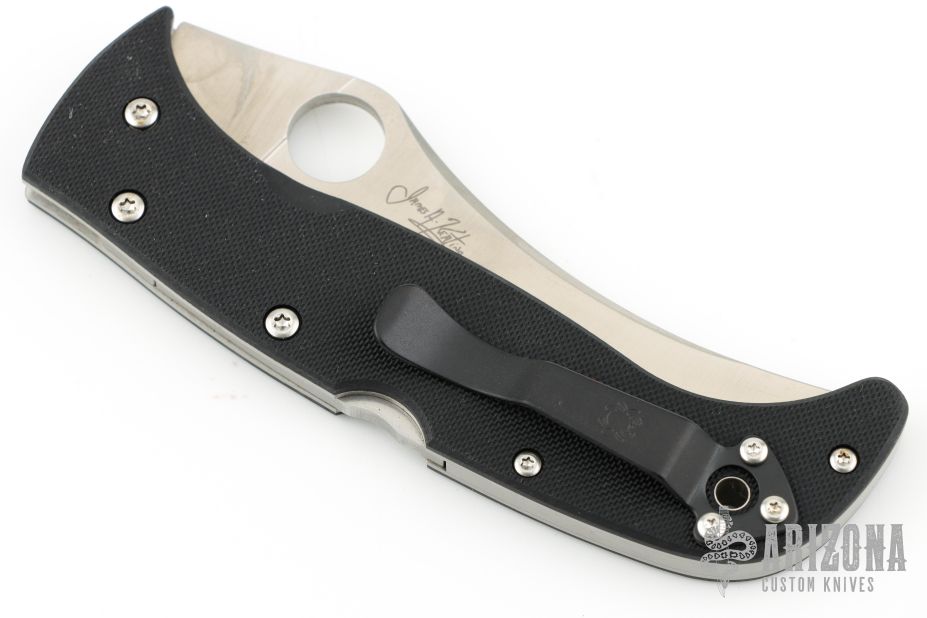This Chinook 4 from Spyderco features a satin finish blade with thumbhole. The handle has textured black G-10 scales with stainless steel liners and backspacer, 4-way reversible black stainless steel clip. Built like a tank for EDC, survival, and martial arts use. Comes with original box and papers. New condition.
