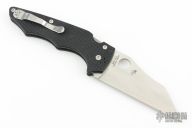 This Yojumbo by Spyderco features a satin finished wharncliffe blade with thumbhole. The handle has a black G-10 frame with stainless steel liners, lock is on the spine of handle. 4-way reversible stainless steel clip. Nice detent, lockup and blade seating. Excellent condition. Comes with original box and papers.
