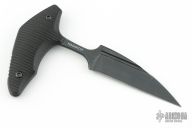 This Guilty Push Dagger by Bastinelli Creations features a black PVD blade with a full tang construction and fullers, .125" blade stock, .733" blade depth, full tang construction.  The handle has black richlite scales. Has a few scuffs, otherwise good condition.