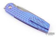 This Cortex XL by Brown Knives features a clip point stonewashed finish blade with fullers, notched thumbrest and front flipper. The handle has a milled and anodized titanium frame with matching backspacer and tip up clip with hidden screws. Has over travel stop. Rides on bearings, nice detent, lockup and blade seating. Comes with original box and COA #184. Excellent condition.