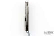 - Stonewashed/polished flats Titanium frame lock handle scales with White CarboTi inlays
