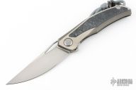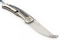 This Quantum WKM by Shirogorov features a two-tone blade with notched thumbrest and flipper. The handle has a two-tone titanium frame, White CarboTi inlays, titanium backspacer, tip up titanium clip with hidden screws. Rides on SRRBS, nice detent, lockup and blade seating. S90V blade steel. Excellent condition. Comes with original box and COA.