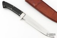 This Baltika from Citadel Knives features a mirror polished drop point blade with .139" blade depth and 1.085" blade depth. The handle is comprised of a stainless steel guard and buffalo horn scales over full tang construction. Includes leather sheath with belt loop. Has a couple small check marks on the horn, otherwise excellent condition.