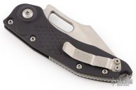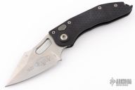This Stitch Auto by Microtech Knives features a stonewashed blade and false top edge, notched thumb and finger rests. The handle has a black anodized and milled aluminum handle with a bead blasted titanium backspacer and a bead blasted stainless steel clip, tip up carry, lanyard hole at the butt. S/N of 6854 dated 06/2021. Has a couple light scuffs, excellent condition otherwise.