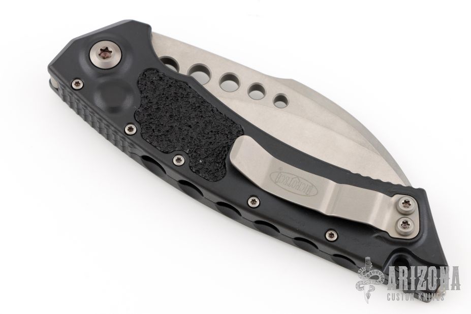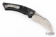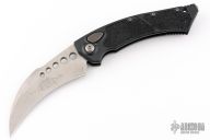This Hawk Auto by Microtech Knives features a stonewashed hawkbill blade. The handle has a black aluminum frame with blasted stainless steel hardware and tip up clip. Dated 02/2020and s/n 753. Excellent Condition.