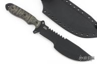 EJ's quest for such a knife started on the Serengeti Plains of Tanzania, Africa while conducting a 21 day X-treme Survival challenge on "Naked and Afraid". The knife EJ took with him, being the only piece of equipment he had, did not perform well in the field and became non-functional. It is potentially disastrous to be out there and unable to rely on your knife. Upon his return to the U.S., EJ tested many knives, sought out the advice of many top custom knife makers he personally knew, and spent countless hours researching all aspects of the art of knife making. A lot of influences, needs, and rigorous tests went into the thought process and design behind the SXB. His 2 year journey culminated with the creation of his vision by TOPS Knives.