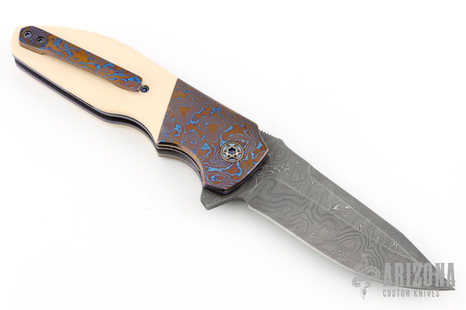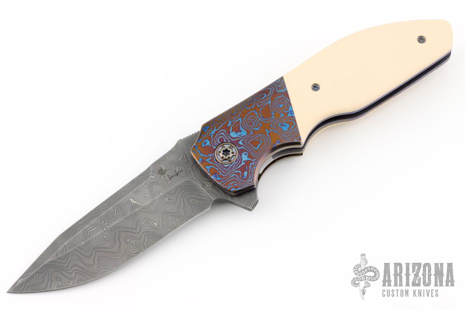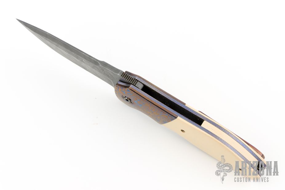 "I believe that in order to make a superior knife you must use superior materials. That is why I work with top grade, high-tech materials. The steels I generally use in my folders and fixed blades are CPM S30v, CPM 154 CM, BG-42, and Damasteel. The handle materials I mostly use range from G-10, Micarta, and carbon fiber to mother of pearl and fossilized mammoth ivory. I exclusively use 6al/4v titanium for the liners in my folders. I mostly make my bolsters from materials such as 6al/4v titanium, damascus, carbon fiber, timascus or mokume. When making Japanese style blades I generally use 1050, 1084, or L6. The handles will usually consist of a phenolic handle covered in stingray skin then wrapped with a nylon cord that has been impregnated with resin to give it maximum strength, toughness, and longevity. I am constantly striving for perfection in creating, for what I feel is one of the highest quality knives on the market today."