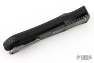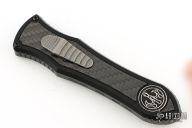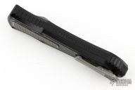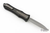 This knife is a Deadlock Model C by Grant and Gavin Hawk. It has a double-edged stonewashed blade. The handle has carbon fiber inlays in the black aluminum frame with a tip down spring clip, titanium. The thumb slide on the handle is also titanium and handle has a carbon fiber overlay. Grant and Gavin Hawk set out to create a double action OTF with no blade play.... They did it, NO blade play. Comes with maker pouch, card, and tool. Has a couple dings and some light scuffs. Great condition otherwise.
