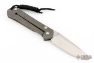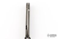 This Large Sebenza by Chris Reeve features a satin finished blade with a single thumb stud and a notched thumbrest.  The frame is bead blasted titanium.  Comes with original box, belt sheath, and signed COA dated February 9, 1993. Excellent condition.