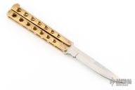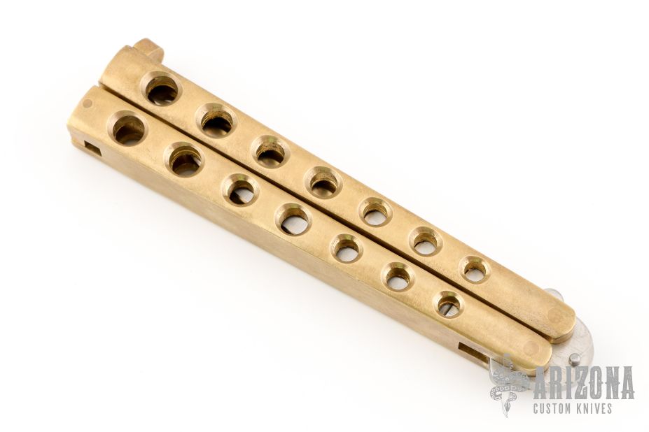 1980's classic Taylor Balisong with brass handles. Unusual find. Has a false top edge. Has some light scratches, otherwise excellent condition.