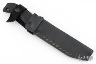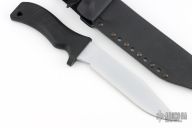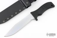 This ATAK by MadDog Knives features a clip point blade. .250" stock. 1.435" blade depth. Selectively tempered, the knife has a Rockwell C-scale hardness of 62 at the edge (as hard as a file), and HRC 50-54 throughout the spine and hidden full tang. Hard chrome blade finish. With "Mad Dog" on the blade. The black handle material is the proprietary glass / epoxy composite -- compression bonded to the hidden full tang and incredibly ergonomic. It is hard and tough enough to be used as an impact tool. Includes a ATAK Combat sheath. Excellent condition.