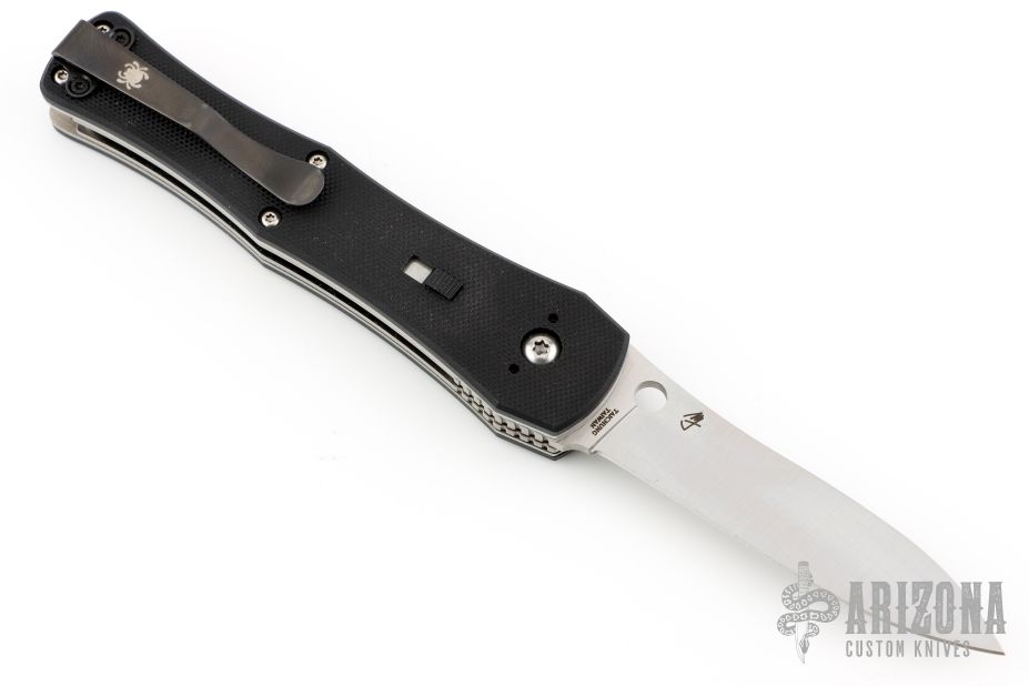 This JaniSong by Spyderco Knives is a Michael Janich design and is rare in the USA since Spyderco chose to only sell this knife outside the USA. Features a satin finished blade. The handle has black G-10 scales with locking switch, stainless steel liner and barrel spacers. Has a black stainless steel 4-Way Reversible clip. Includes original box and papers. Excellent condition.
