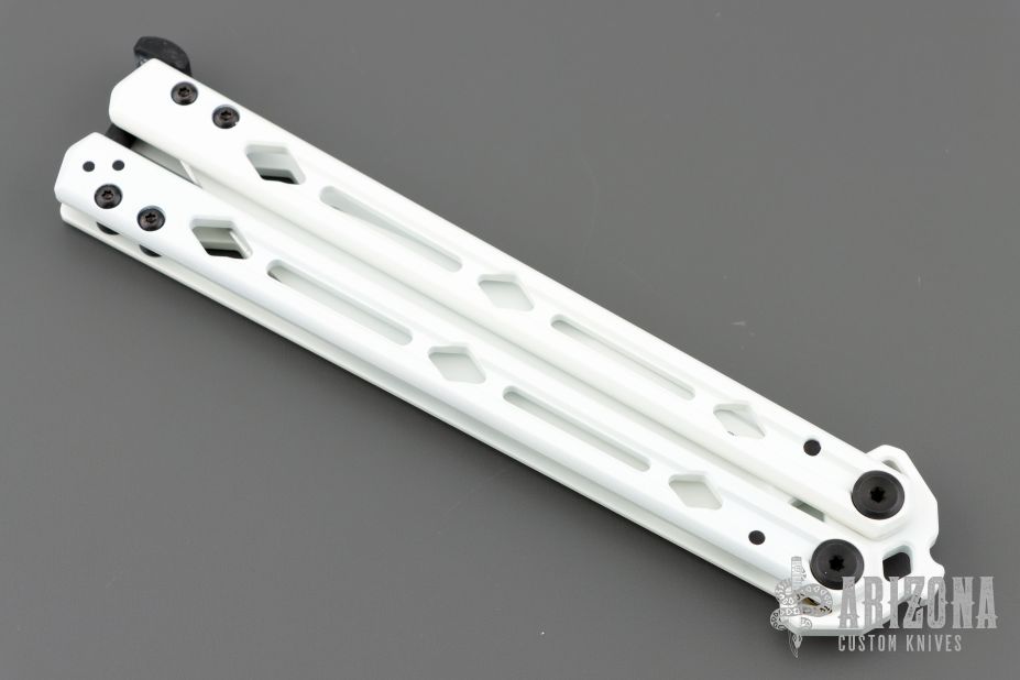 • White Stainless steel handles have perfect heft and a gentle bead-blasted texture.