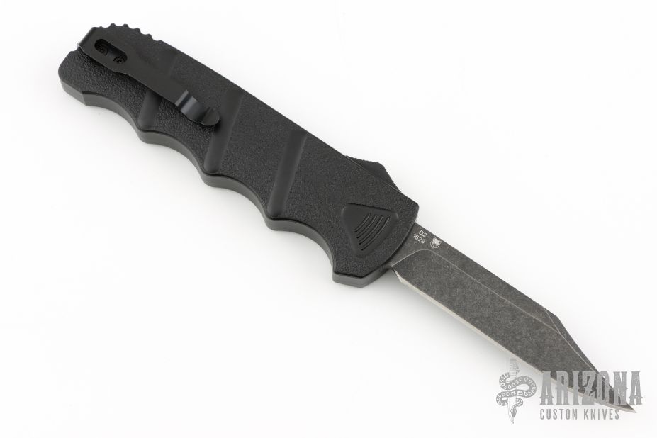 The sturdy Boker Plus Kalashnikov OTF expands the popular Kalashnikov series with a modern OTF. The black aluminium handle is strongly reminiscent of the bayonet of the famous assault rifle, the raised structural grooves also provide a secure grip in any situation. The dark stonewash blade is made of D2 stainless steel and can be conveniently operated via a slide on the back of the handle. Features a practical deep-carry clip (tip-down).
