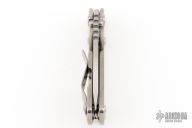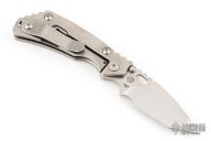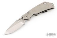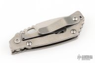 This PT by Mick Strider features a satin finished tanto blade with stonewashed flats, notched thumbrest and thumbhole. The handle has a stonewashed titanium frame with matching tip up clip. New condition.