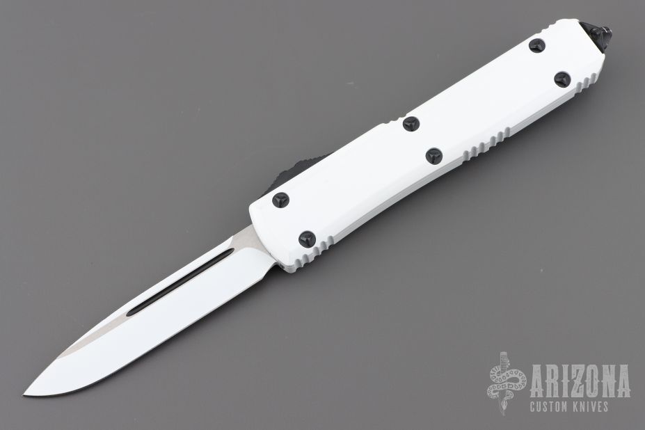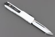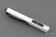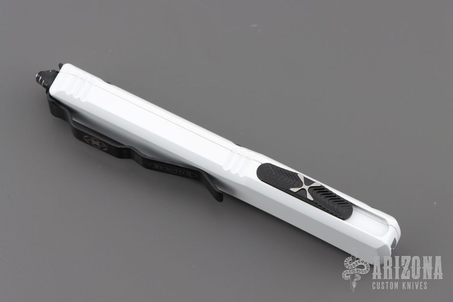 This Storm Trooper Ultratech OTF by Microtech Knives features a s/e white cerakoted blade with a standard edge and a white cerakoted aluminum handle. Black stainless steel clip. Glass breaker. Serial number 01302 and dated 07/2016. Comes with original box and papers. Excellent condition.