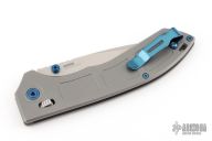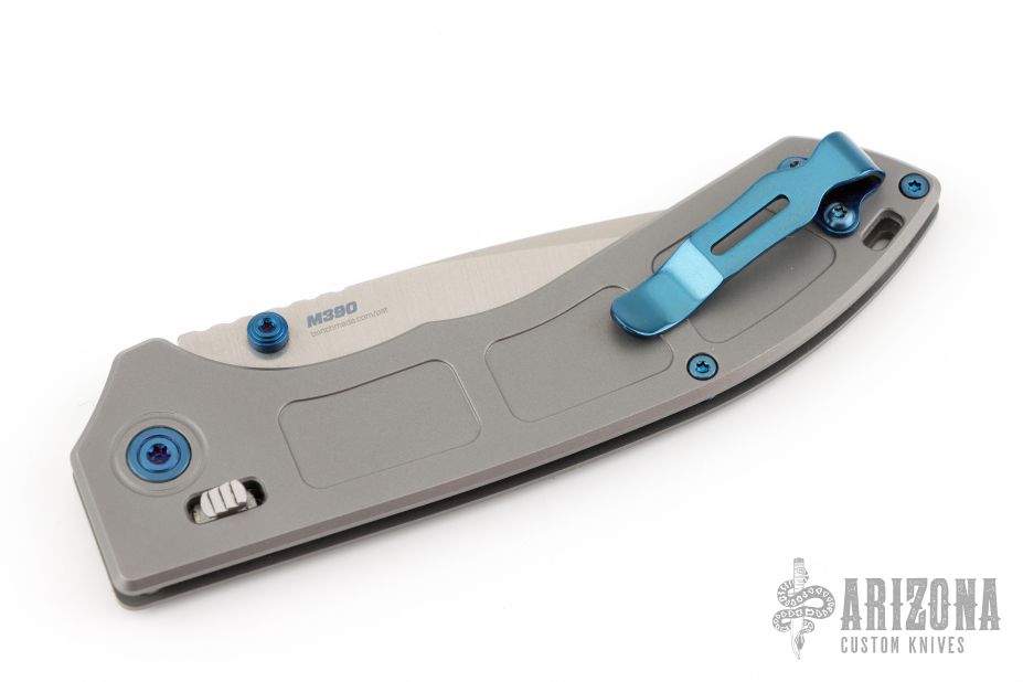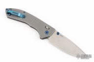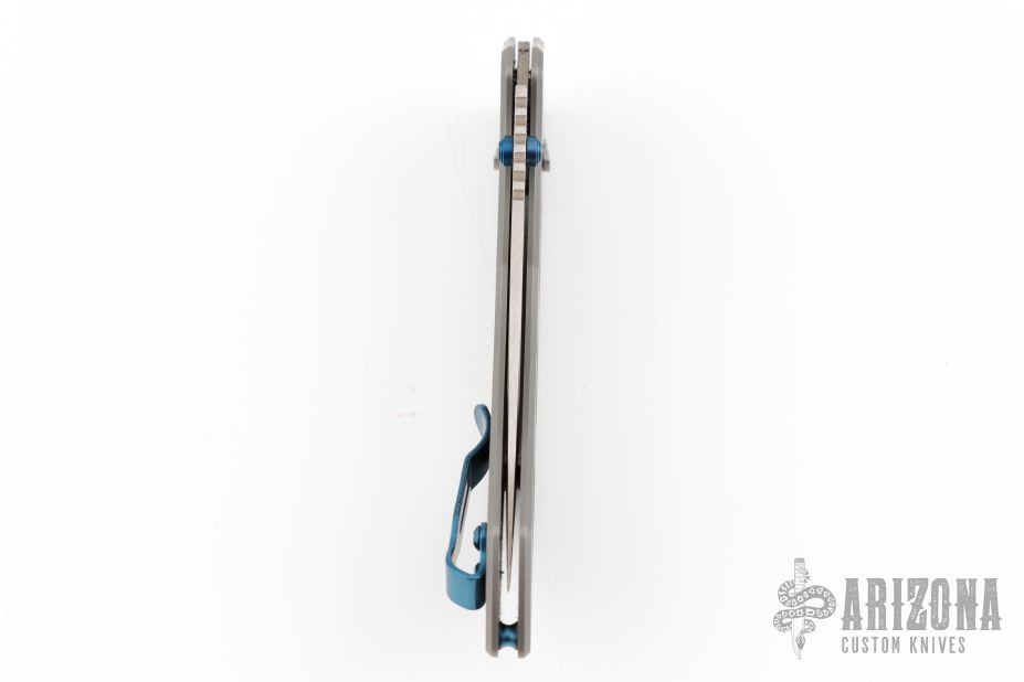 Featuring a milled titanium handle, the Narrows is as comfortable as it is lightweight. Measuring just over 4.5 inches long, your hand feels in control and never crowded as you set the Narrows to work. The vibrant blue anodized thumb studs, pocket clip, and hardware add a beautiful style to the pocket knife you'll treasure for a lifetime.
