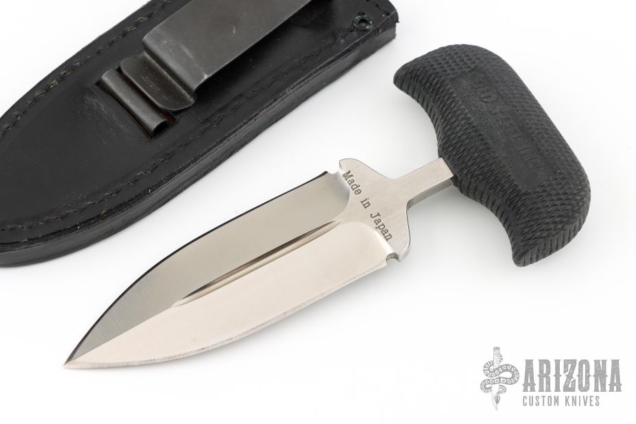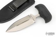 This Defender 1 Push Dagger by Cold Steel has a satin finished double edged blade with fullers and hidden tang, .186" blade stock, 1.328" depth. Handle is non-slip polymer. Excellent condition. Comes with a black leather sheath with clip. Comes with original box and papers.