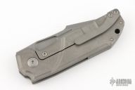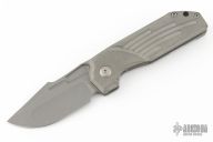 This SnappyBoi is a Jason Stout design, produced by Reate. It features a dark bead blast blade with thumbhole and notched thumbrest. The handle has a matching titanium frame, backspacer, and tip up clip. Has lock face insert. Comes with original box. New from maker!