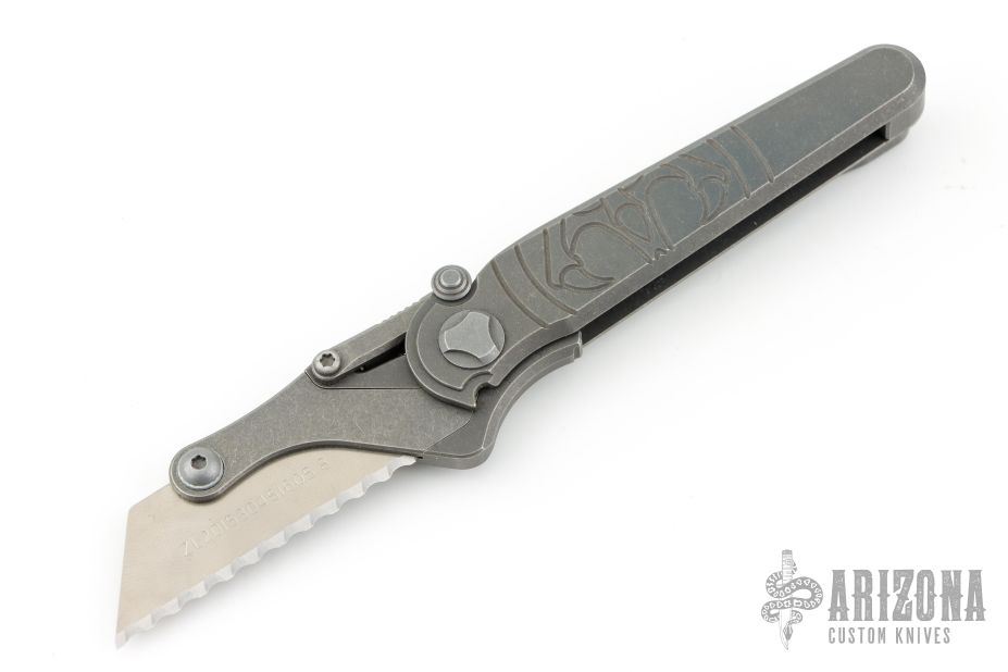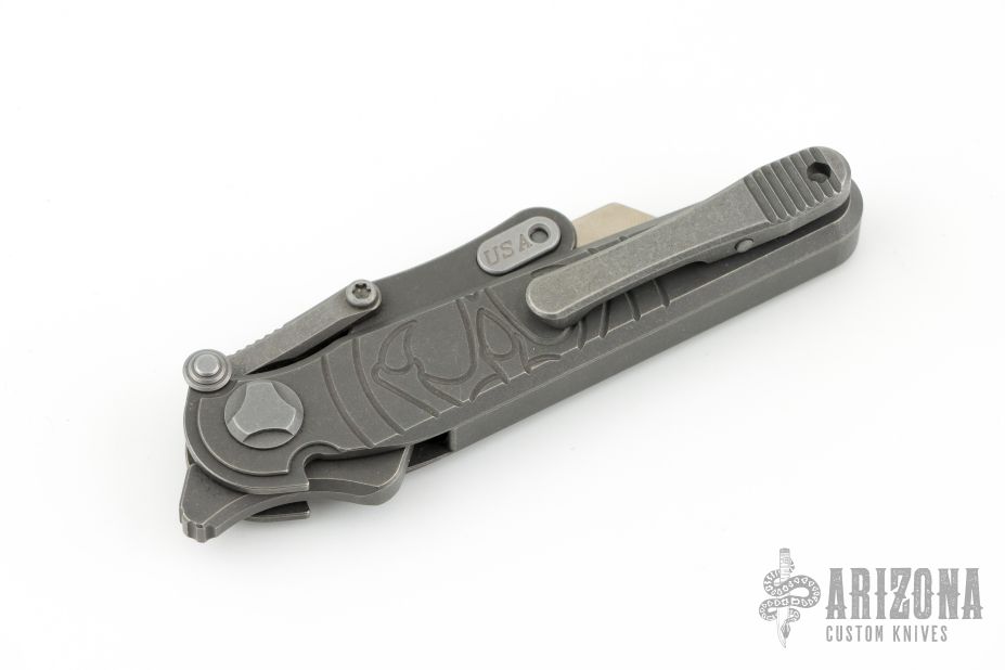 G&G Hawk Shortcut utility knife. Stonewashed Titanium Frame and flipper. Snappy flipping action. Solid lockup, blade seating and centering.