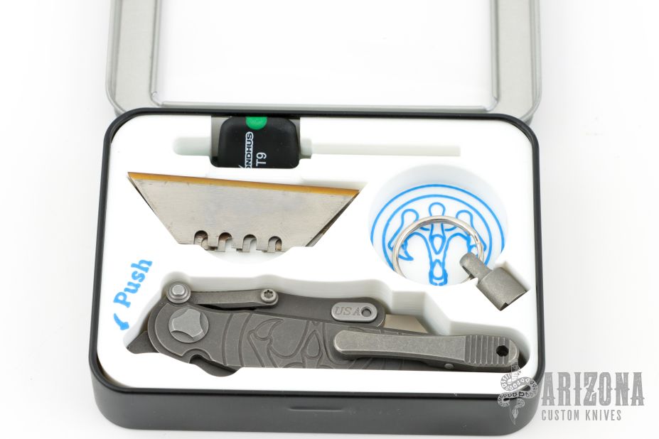 Comes with original packaging, maker's card, and replacement razors. Has some light scuffs and scratches, great condition otherwise.