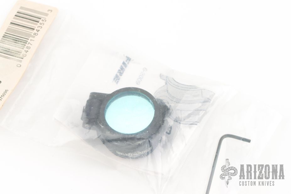 The FM55 attaches to any SureFire WeaponLight or flashlight with a 1.0" bezel, producing a smooth beam of blue light that helps preserve night-adapted vision, provides low-signature output for stealth operations, and makes blood and hydraulic fluid appear deep black making it easier to see. The hinged filter lid flips open for white light output, thoroughly sealing off white light when closed. Locks hold diffuser lid in open or closed position even under weapon recoil. Integral attachment clamp features self-locking tightening screw; 1/16" hex (Allen) wrench included.