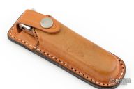 This early balisong from Pacific Cutlery features a Jody Samson ground satin finished blade. The handles are stainless steel with dovetail black linen micarta inlays, has t-latch. Has some light scratches otherwise the knife is in excellent condition. Comes with original brown leather belt sheath and a zippered case.