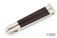 Balisong USA started manufacturing butterfly knives in the late 1970s, then changed its name to Pacific Cutlery in the early 1980s, before finally becoming Benchmade. The earlier knives featured a wide variety of custom blade designs (many of which were hand ground by master knifemaker Jody Samson, well known for making the swords in the movie Conan the Barbarian), as well as a number of exotic inlays for the handles (ivory, prehistoric ivory, scrimshawed ivory, mother-of-pearl, ebony, tropical woods, etc.)