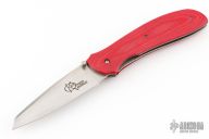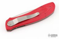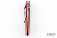This Random Task by Ken Onion features a hand rub satin finished blade with single thumbstud, has assisted opening. The handle has red G-10 scales, bead blasted titanium liners and tip down clip, and a black G-10 backspacer. Nice detent, lockup and blade seating. Has a couple light scratches, otherwise excellent condition. Comes with a zippered case.