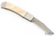 "I have always had a great interest in knives, even when I was a young boy growing up in Wisconsin. My dad gave me a knife that my grandfather made. I never got to meet my grandfather so that knife is very special to me. I first got started making knives in 1988 when a co-worker gave me a piece of tool steel from a saw to work. My brother told me that the knife that I made out of it looked like something made in a prison. I enjoy knifemaking because you are starting out with a chunk of steel and a chunk of ivory, and you hopefully end up with something of beauty. These are a few of the many makers that have inspired me: Buster Warenski, D'Holder, Dennis Freidly, Tim Hancock, and Don Norris. I prefer using Damascus steel because of the wide variety of beautiful patterns available. I like using natural materials for handles such as fossil Walrus, Mammoth ivory, and Mammoth teeth."