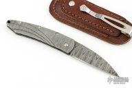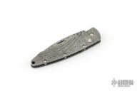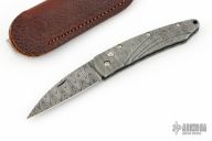 The Spryte is a discontinued button lock automatic model by William Henry Fine Knives. This Spryte is marked PROTO on the front of the frame near the blade. It features a Stainless Damascus blade with nail nick. The handle has a Stainless Damascus frame with lanyard hole at the butt. Diamond inset in push button with a gold bezel. Includes original box, COA and sheath. Excellent condition.