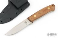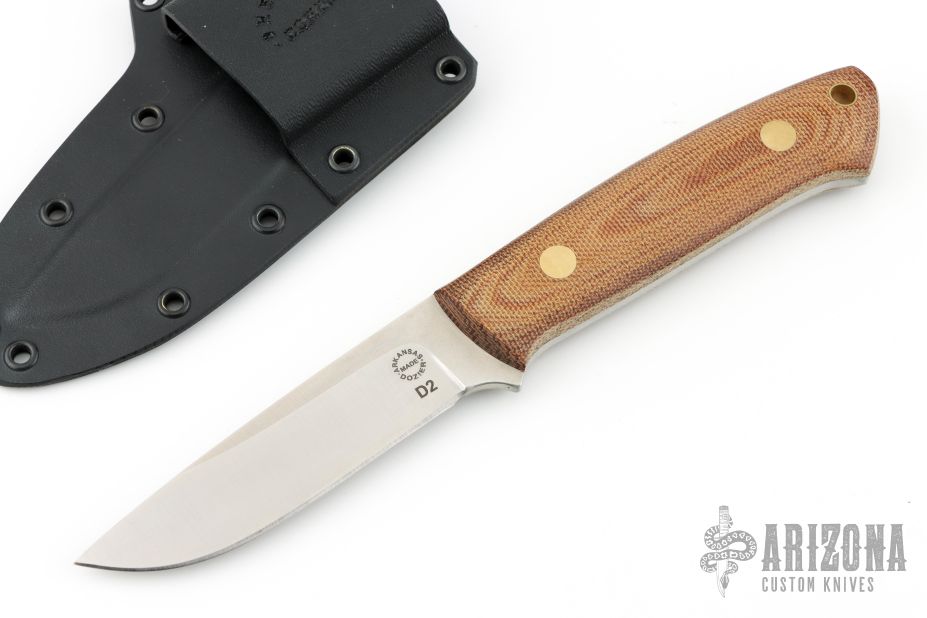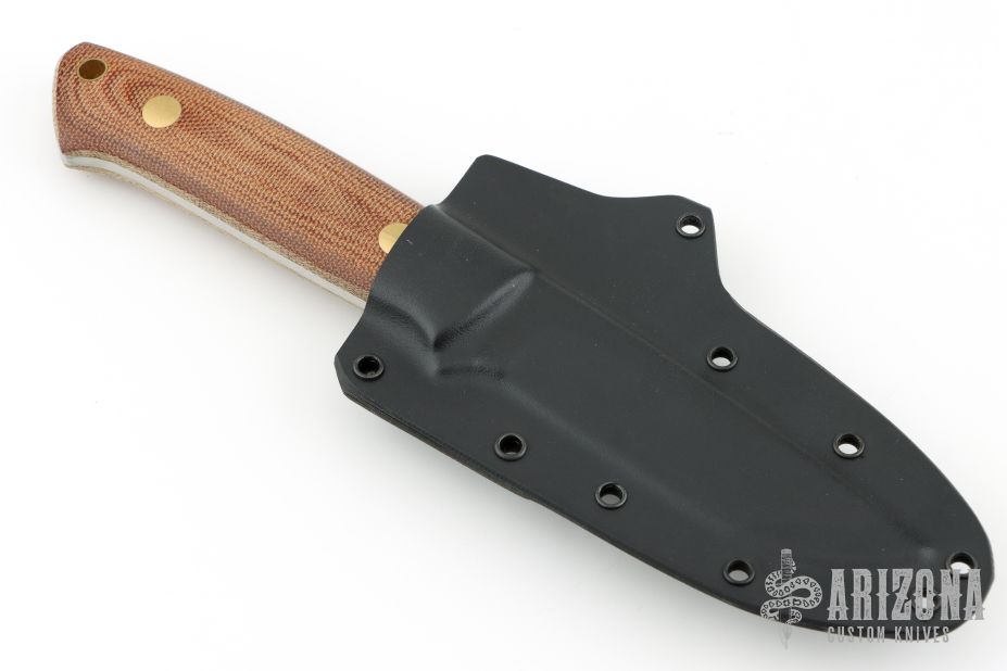 This K-22 Buffalo River Hunter by Dozier Knives features a satin finished blade, .130" blade stock and .909" blade depth, full tang construction. The handle has natural canvas micarta scales with brass pins and lanyard hole. Comes with kydex sheath with belt clip. New from maker.