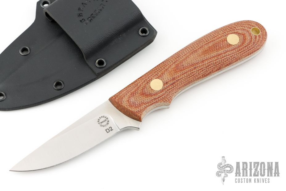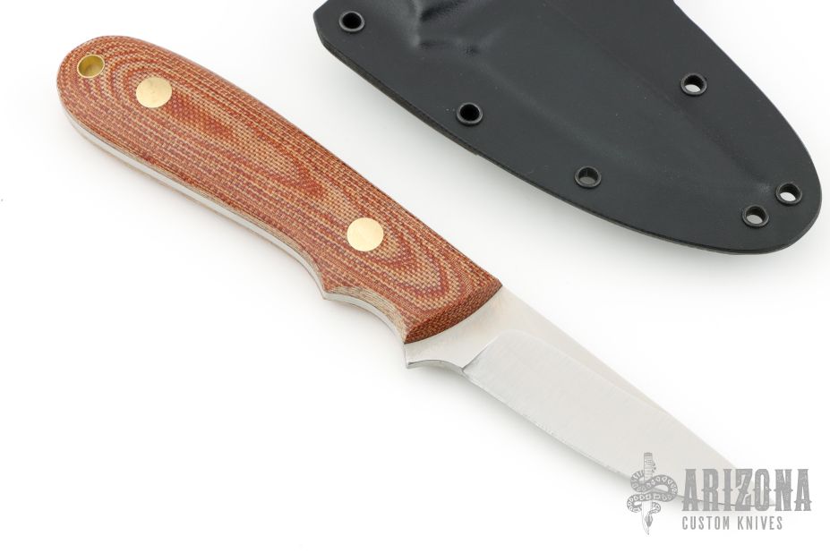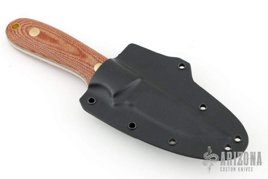 This K-29 Sweetwater by Dozier Knives features a satin finished blade with .135" blade stock and .841" blade depth, full tang construction. The handle has natural canvas micarta scales brass pins and lanyard hole. Comes with kydex sheath with belt loop. New from maker.