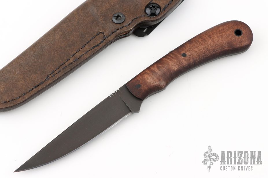 • Leather covered Kydex sheath with multiple carry options can be purchased as a secondary sheath option.