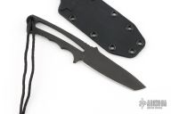 The Professional Soldier is a collaboration with designer Bill Harsey. Has a black PVD coated blade and handle with notched thumb rest and finger grooves, .168" blade stock and 1.170" blade depth. Comes with original box, sheath and COA dated February 6, 2014. Excellent condition.