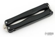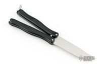 This Vintage CIA Balisong by Hackman has a satin finished stainless steel clip point blade. Handle is black polymer with O-latch at butt. Has some light scuffs and scratches, excellent condition for its age.