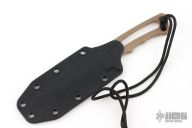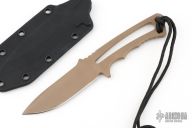 The Professional Soldier is a collaboration with designer Bill Harsey. Has a flat dark earth PVD coated blade and handle with notched thumb rest and finger grooves, .168" blade stock and 1.165" blade depth. Comes with original box, sheath and COA dated August 28, 2017. Excellent condition.