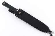 This Trail Master bowie from Cold Steel features a satin finished clip point blade with a false top edge, 5/16" blade stock and 1 1/2" blade depth, hidden tang construction. The handle has a stainless steel guard and a rubber handle. Comes with original box and nylon sheath. Excellent condition.