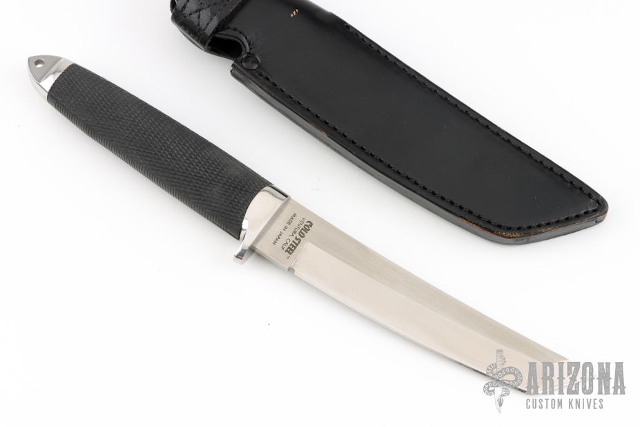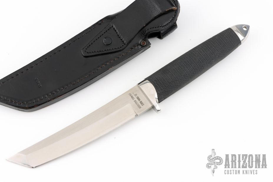 This Master tanto by Cold Steel features a San Mai VG1 blade in satin finish. Guard and pommel are stainless. Handle is textured Kraton for a sure non-slip grip. Comes with original box and leather belt sheath. The box is beat up. The knife is in excellent condition.